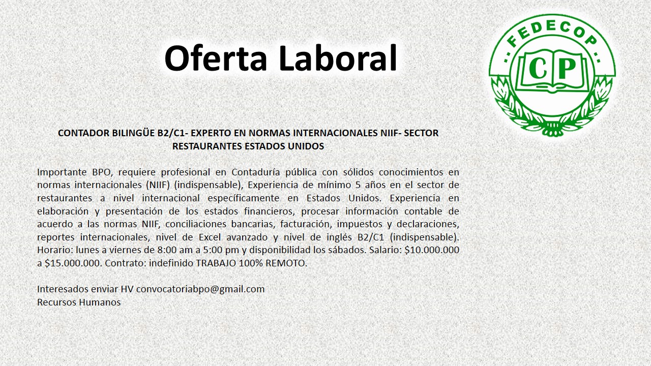 laboral específica en actividades relacionadas con ciencias contables y otros